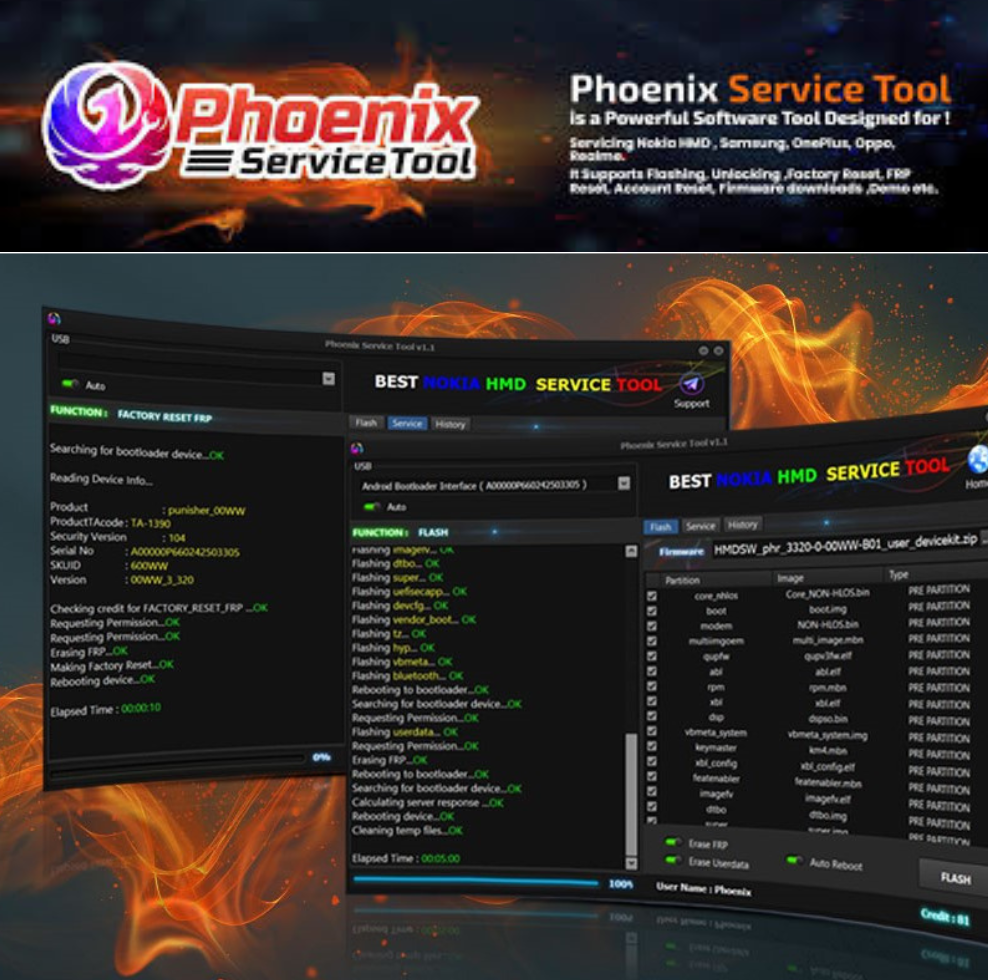 Phoenix Service Tool Phoenix Service Tool es una potente herramienta profesional (software), que permite reparar teléfonos celulares Samsung, Xiaomi, Honor, Oppo, Nokia HMD, OnePlus y Realme.